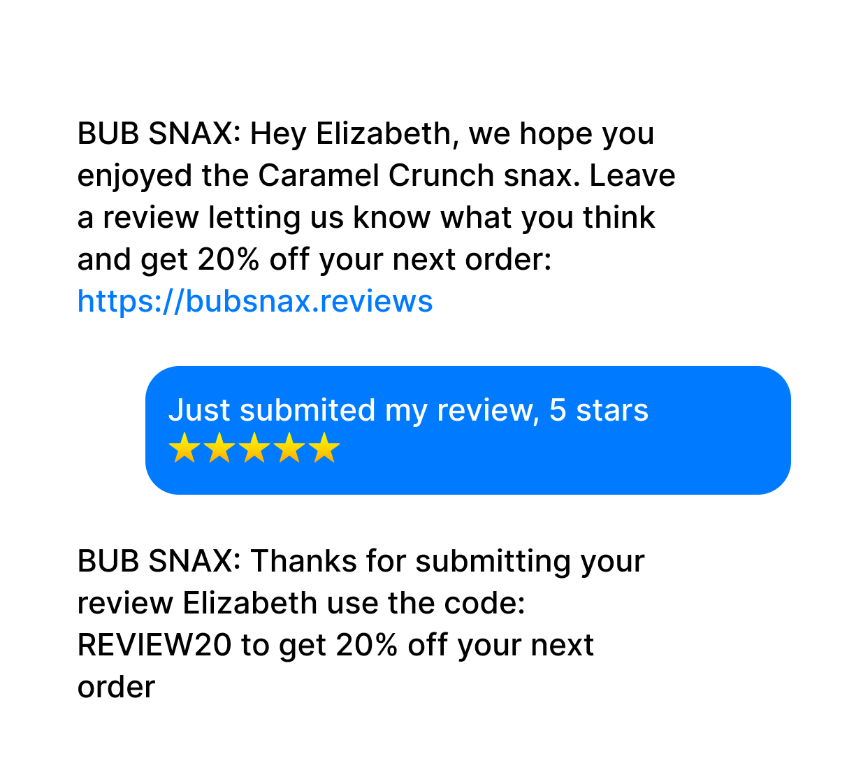 Reward reviewers with a discount in the same SMS thread